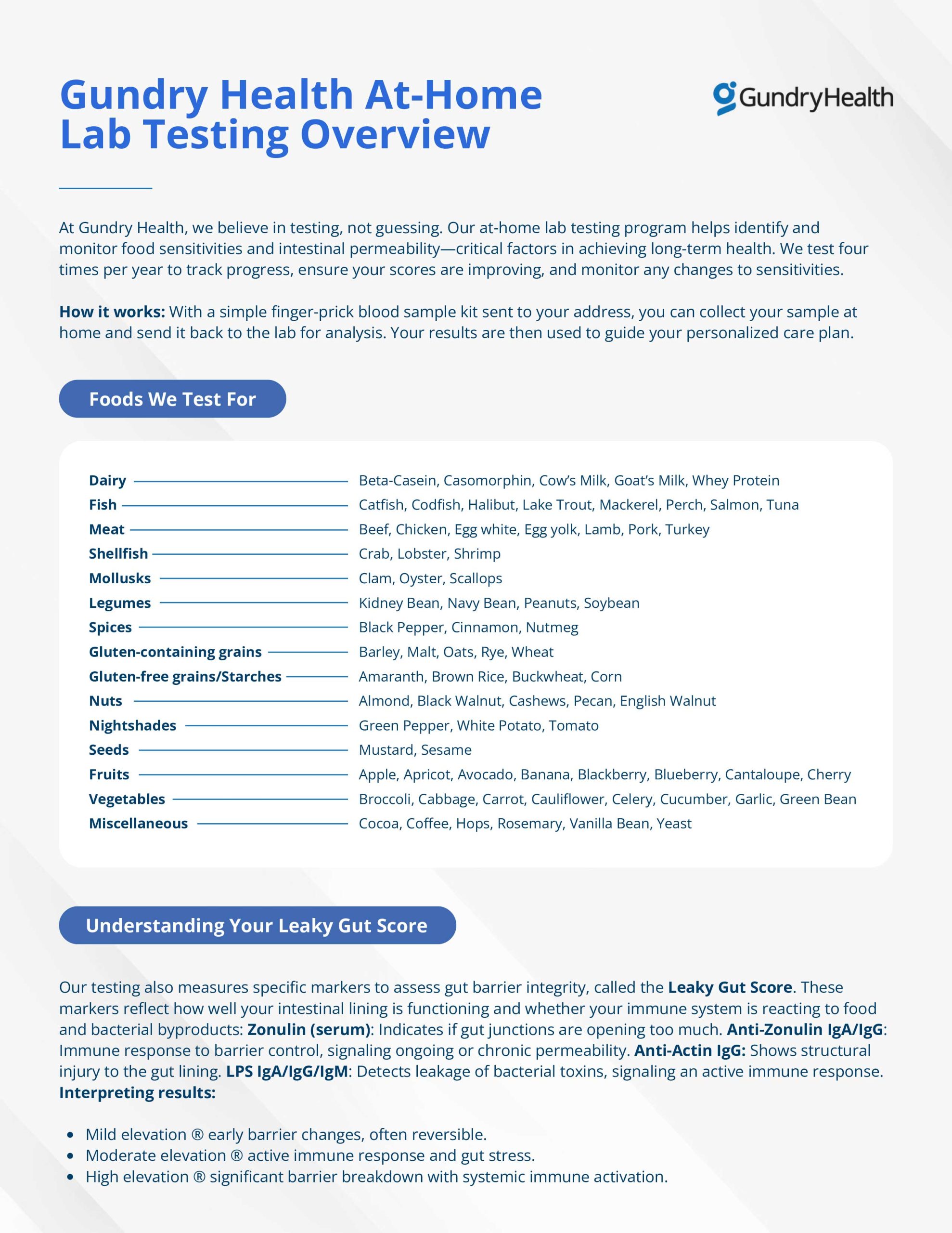 Discover how Gundry Health guides you from testing to transformation. Access our patient roadmap, lab testing overview, and other educational resources—available as easy-to-download PDFs and infographics.